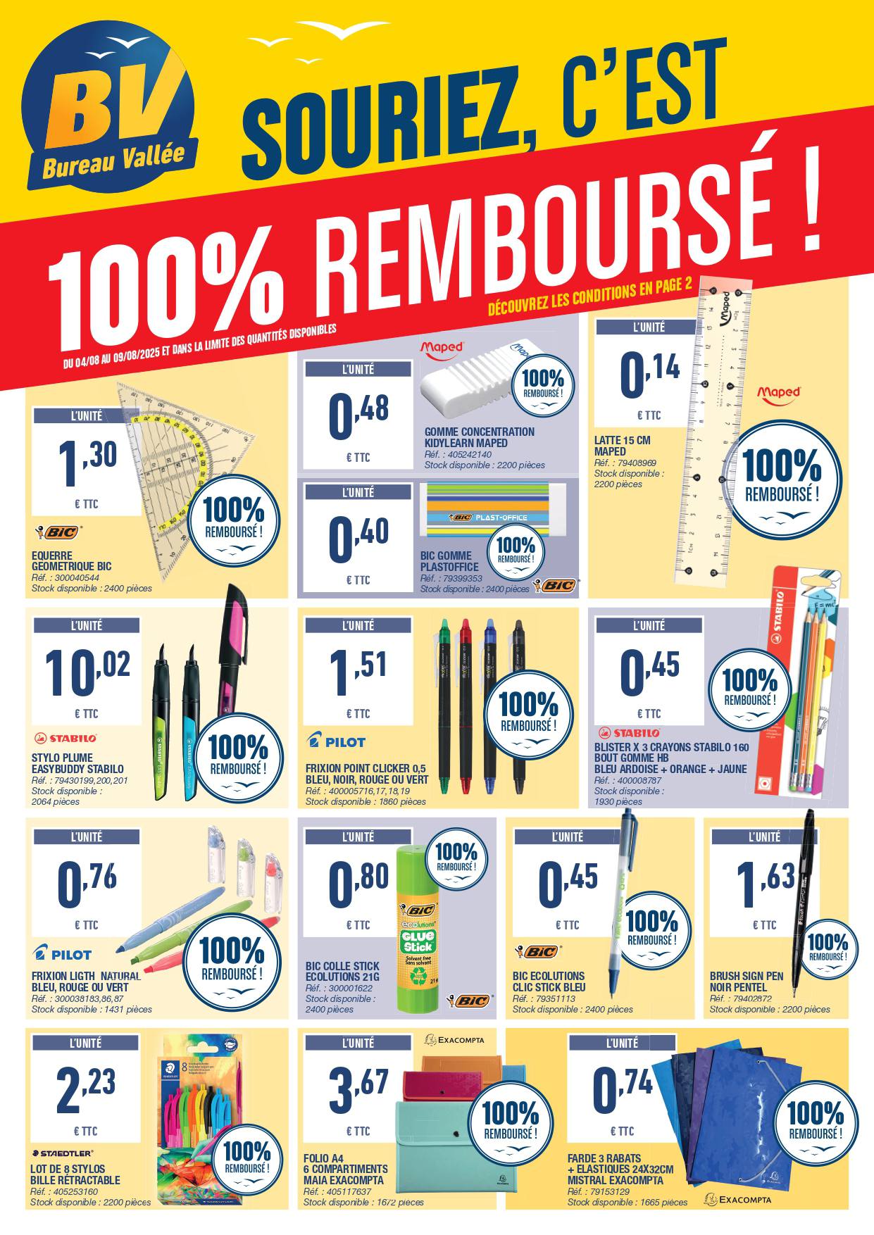 A l’occasion de la rentrée, bureau vallée rembourse 14 produits.